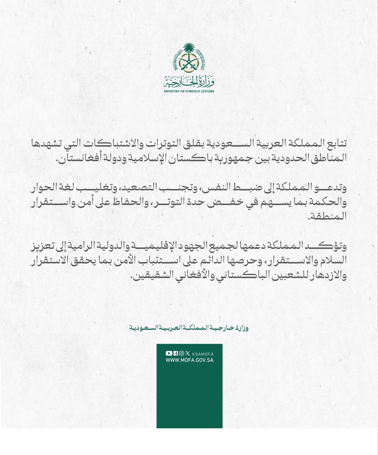 وفي سياق متصل، أعربت المملكة العربية السعودية في بيان لها قبل قليل عن بالغ قلقها بشأن التواترات الجارية بين البلدين، ودعت الجميع إلى تجنب التصعيد وضبط النفس والجلوس على مائدة المفاوضات لفض النزاعات، وتغليب لغة الحوار للحفاظ على أمن واستقرار المنطقة.