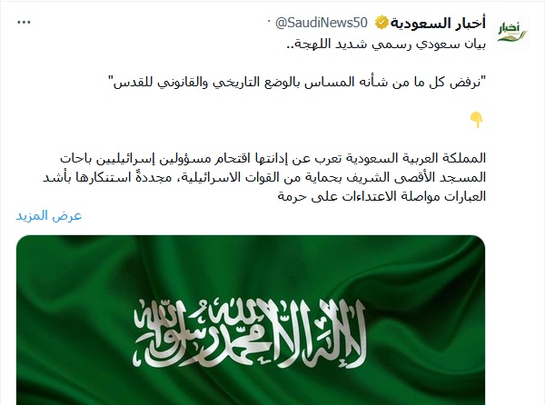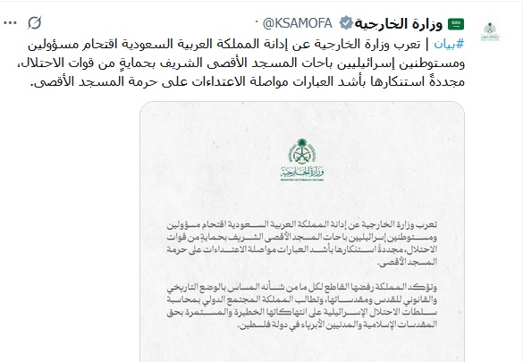 بيان الخارجية السعودية حول اقتحام المسجد الأقصى