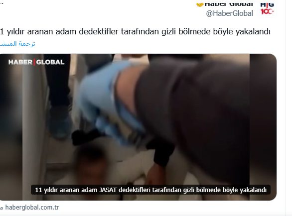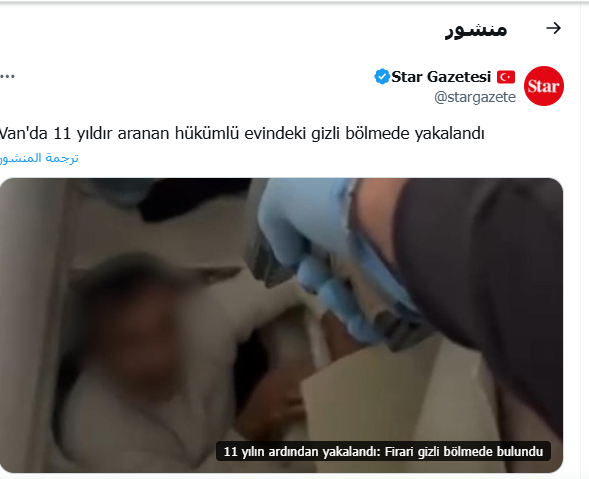 كما شاركت حسابات تركية رسمية على منصة إكس صورًا توثق لحظة إخراج المتهم من موقع الاختباء وسط حراسة أمنية مشددة.