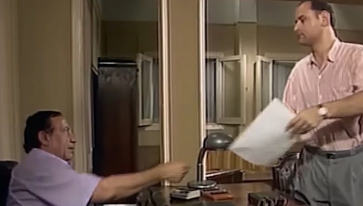 في أحد مشاهد المسلسل الشهير “السقوط في بئر سبع”، يظهر الفنان أبو بكر عزت في دور “أبو موسى”، وهو يطلب من “شفيق” الذي جسده سعيد صالح، أن يكتب طلب بخط يده للحصول على معونة، قائلاً له: “عاوز أشوف خط إيدك”.